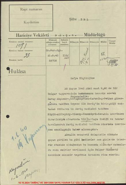 Mustafa Gündoğan kardeşim ailesinin kökleri hakkında bilgi sahibi olmak üzere araştırma yaparken köyümüzde 1940 yılında yaşanmış ve Bulgaristan devletinin dikkatinin çekilmesine kadar giden bir uçak vakası yaşanmıştır.